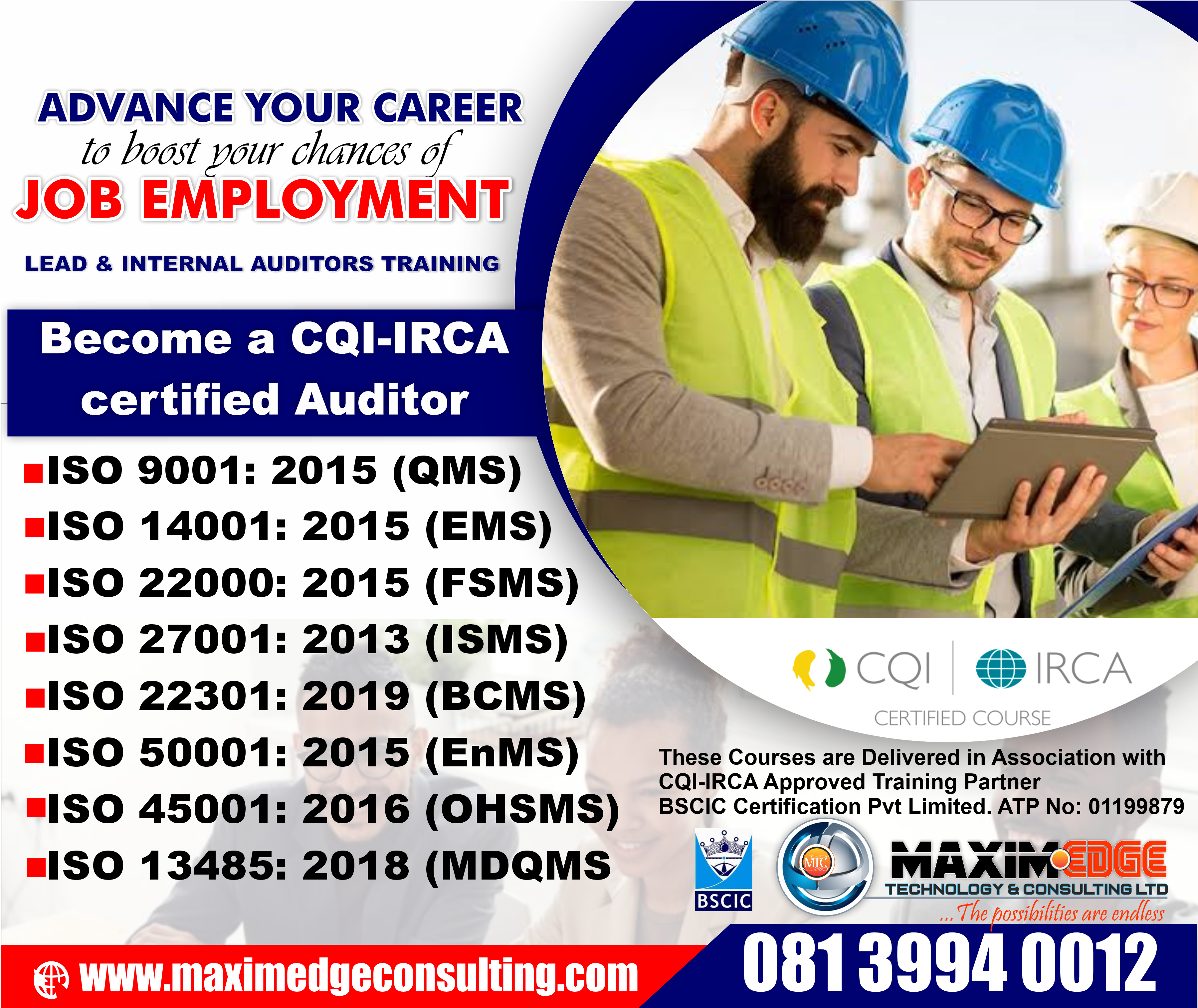 Our comprehensive 5-day ISO Lead Auditor Training programs are designed for ambitious professionals seeking IRCA certification and career transformation. All courses are fully accredited by the Chartered Quality Institute (CQI) and International Register of Certificated Auditors (IRCA) — the world’s most respected body for auditor certification. These Courses are delivered in Association with CQI and IRCA Approved Training Partner BSCIC Certification Pvt Ltd. ATP Number:01199876